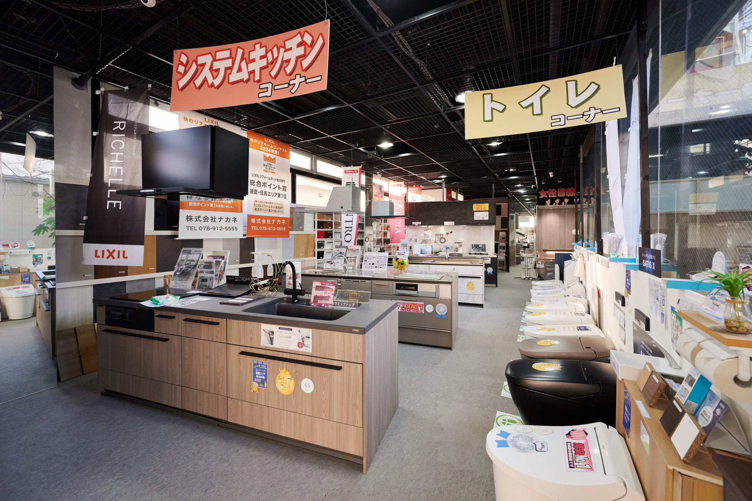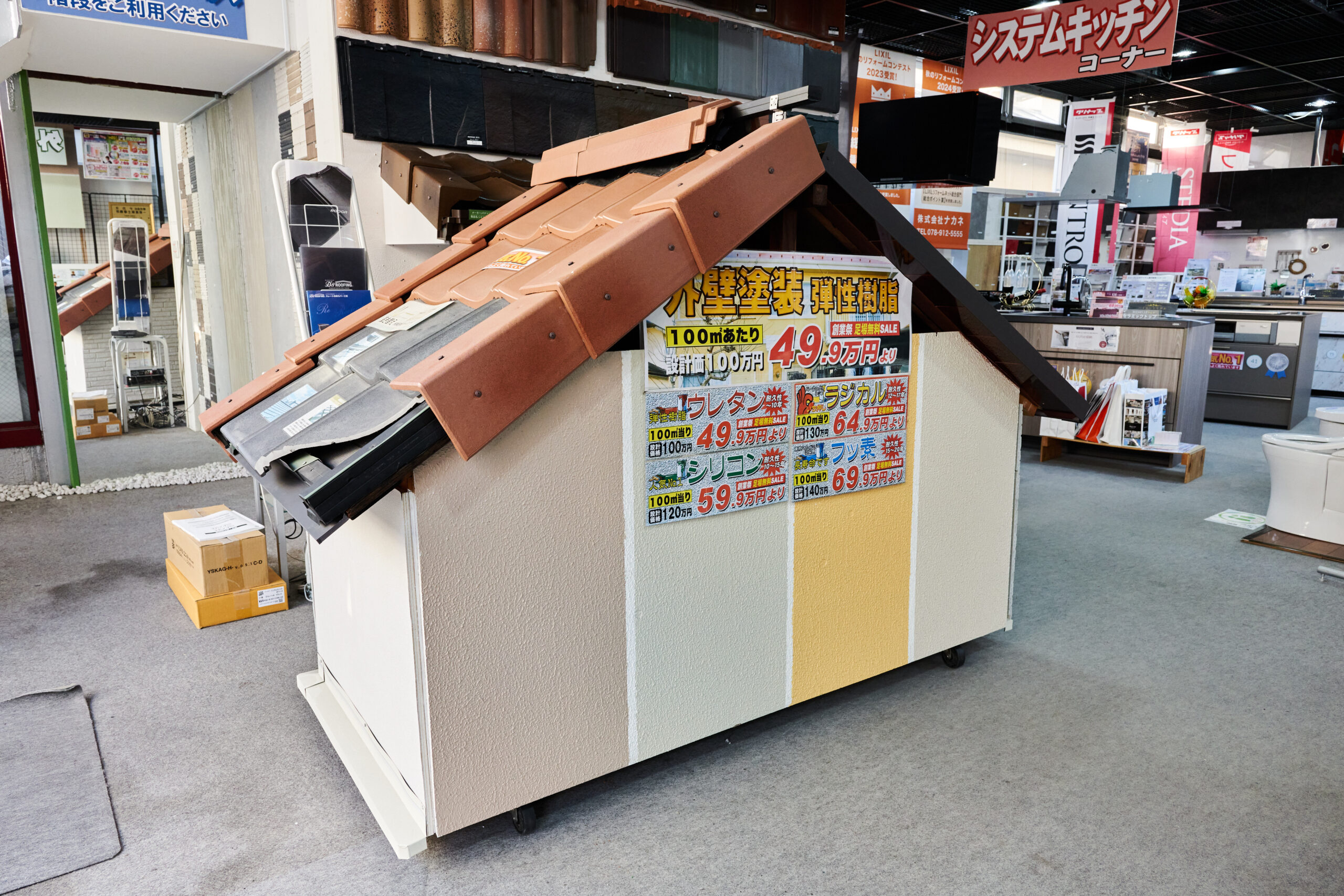 ナカネ本社ショールームでは、システムキッチンやバス、トイレをはじめ、内装建材や屋根・外壁塗装まで、リフォーム関連商品を実際に見て体感できます。豊富なグレードやデザインから、用途や予算に応じて最適な商品を選べるのが魅力です。